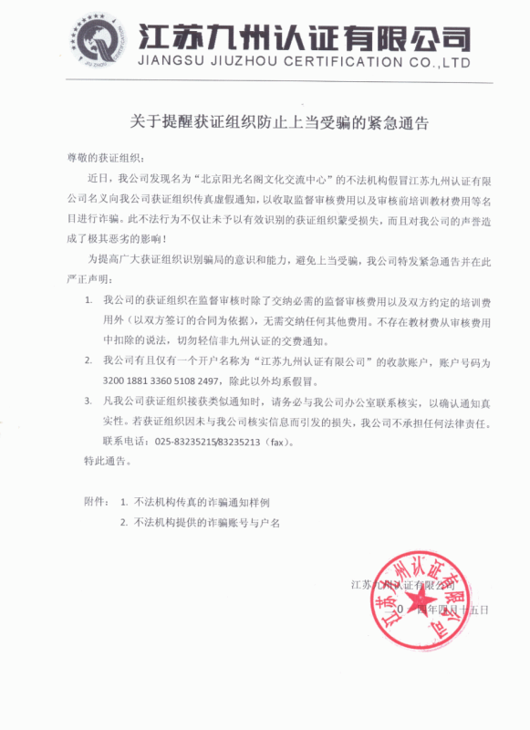 關(guān)于提醒獲證組織防止上當(dāng)受騙的緊急通告/ Unclassified Documents