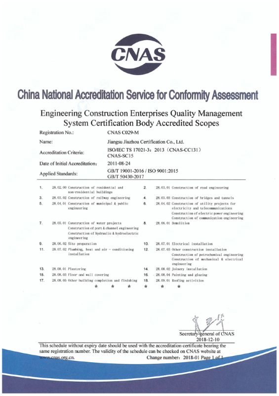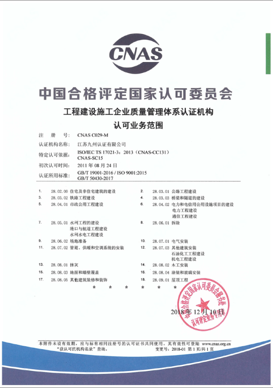 • 工程建設(shè)施工企業(yè)管理體系認可業(yè)務(wù)范圍-中文