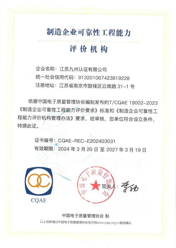 • 制造企業(yè)可靠性工程能力評價機構(gòu)證書