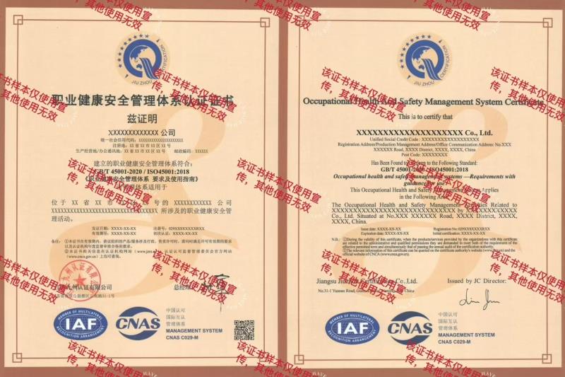 • 職業(yè)健康安全管理體系證書樣本
